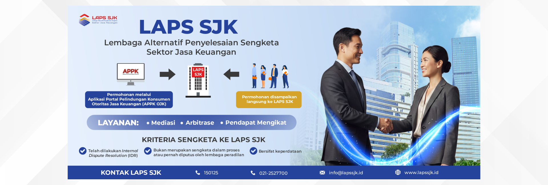 - Permohonan melalui Aplikasi Portal Pelindungan Konsumen (APPK) OJK. dalam hal tidak terdapat kesepakatan atas pelaksanaan penyelesaian sengketa internal antara Konsumen dengan PUJK (Internal Dispute Resolution/IDR), Konsumen dapat mengajukan permohonan penyelesaian sengketa kepada LAPS SJK sepanjang memenuhi kriteria sengketa yang ditangani oleh LAPS SJK.