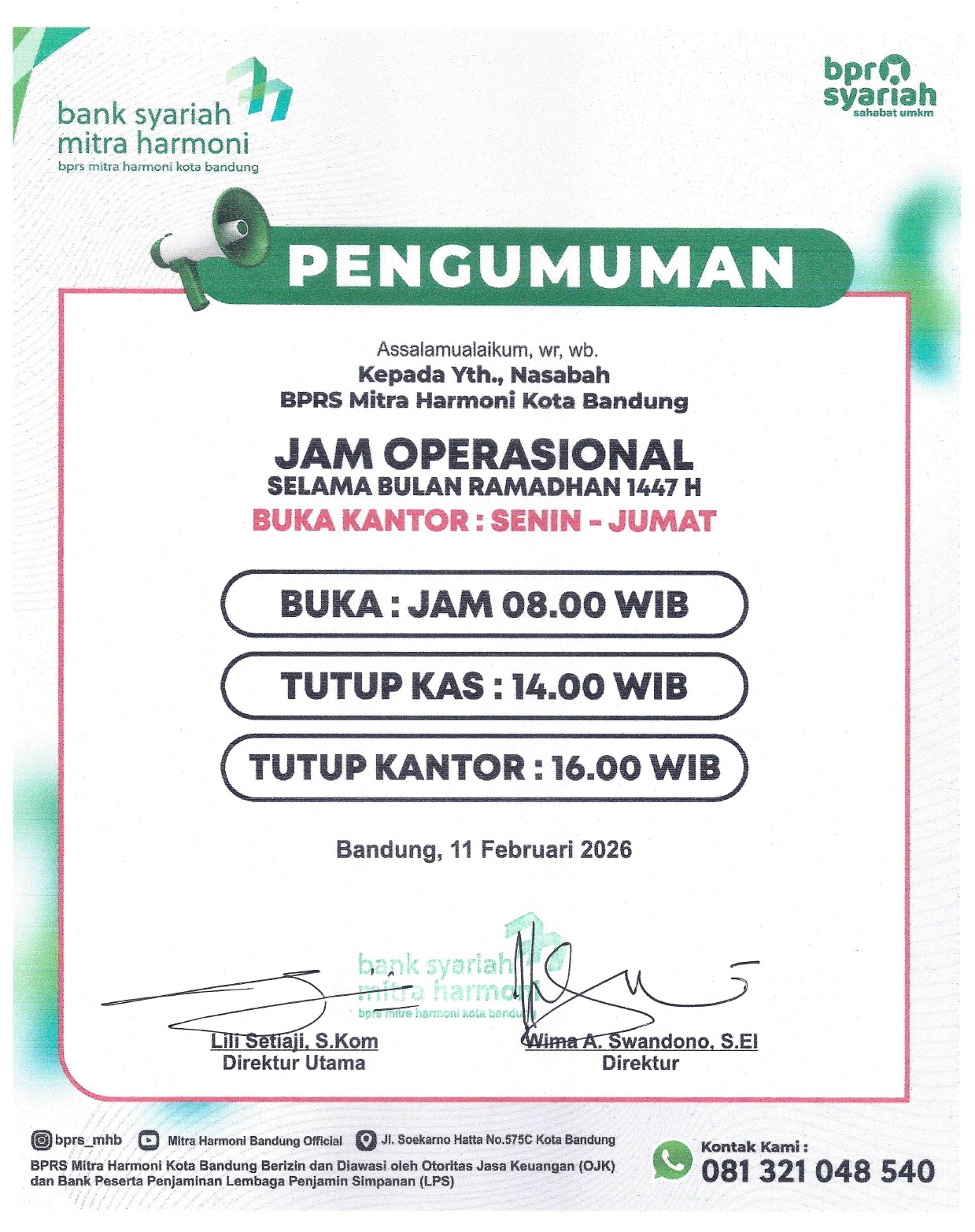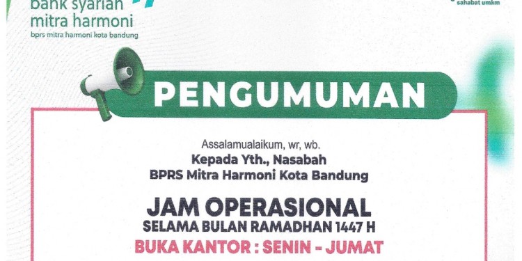 Assalamualaikum, diinformasikan Jam Operasional selama Bulan Ramadhan menjadi :