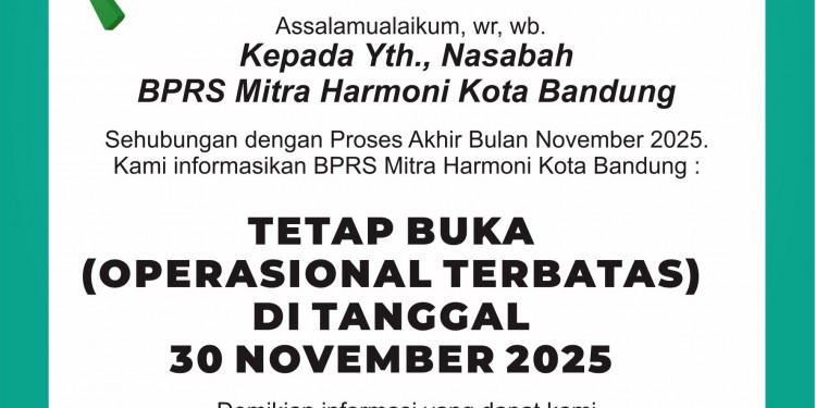 PENGUMUMAN Kepada Yth., Nasabah BPRS Mitra Harmoni Kota Bandung Sehubungan dengan proses closing...